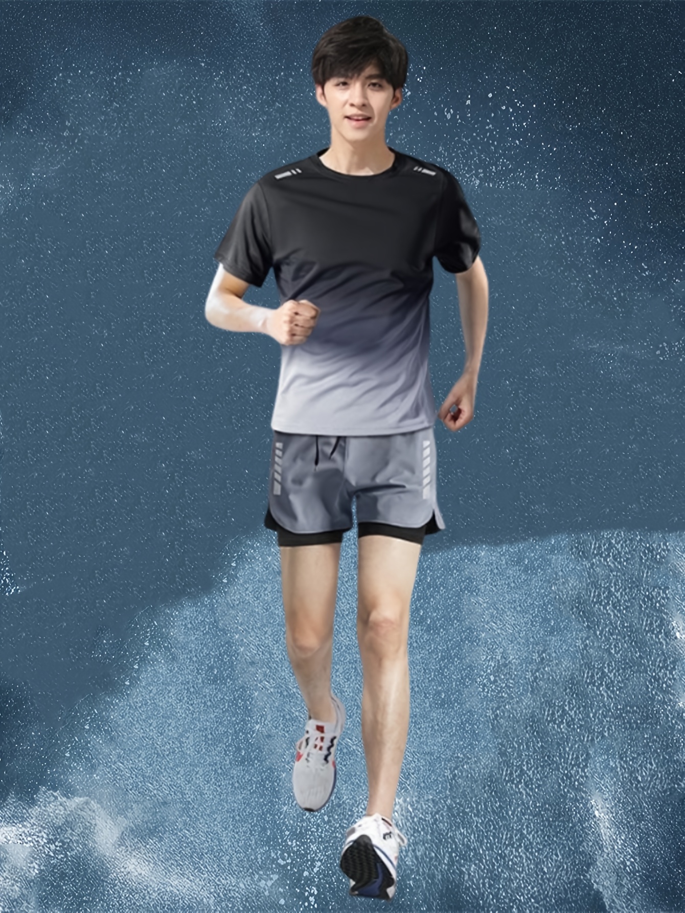 Ideal para treinos, academia e atividades físicas, este conjunto esportivo masculino oferece conforto, suporte e liberdade de movimentos. A camiseta de manga curta garante leveza e respirabilidade, enquanto a bermuda justa com camada dupla proporciona melhor sustentação e segurança durante os exercícios.