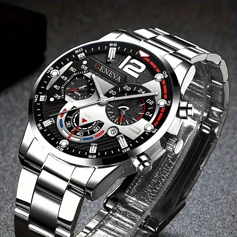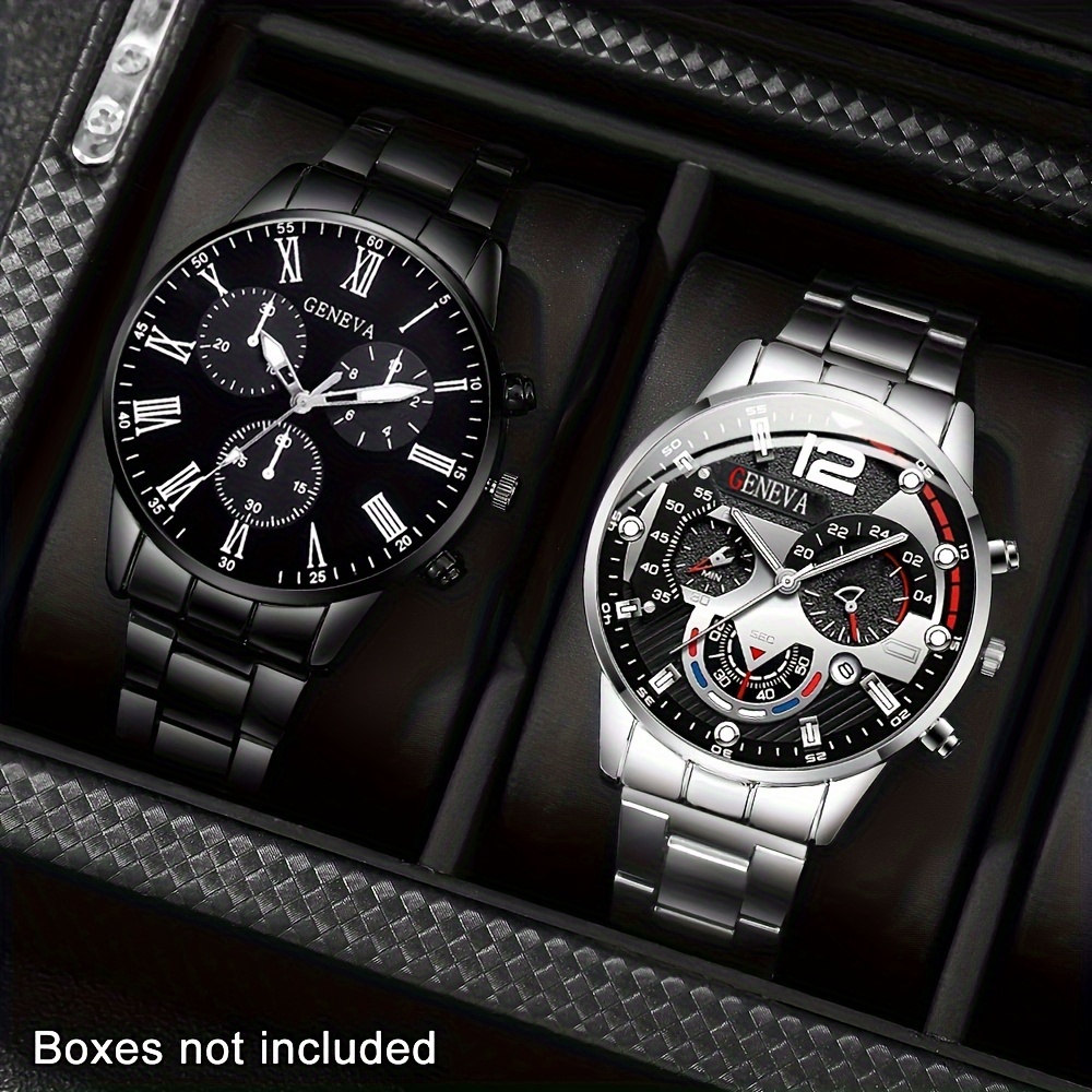 Conjunto de 2 relógios de quartzo redondos para homens, estilo casual de negócios,