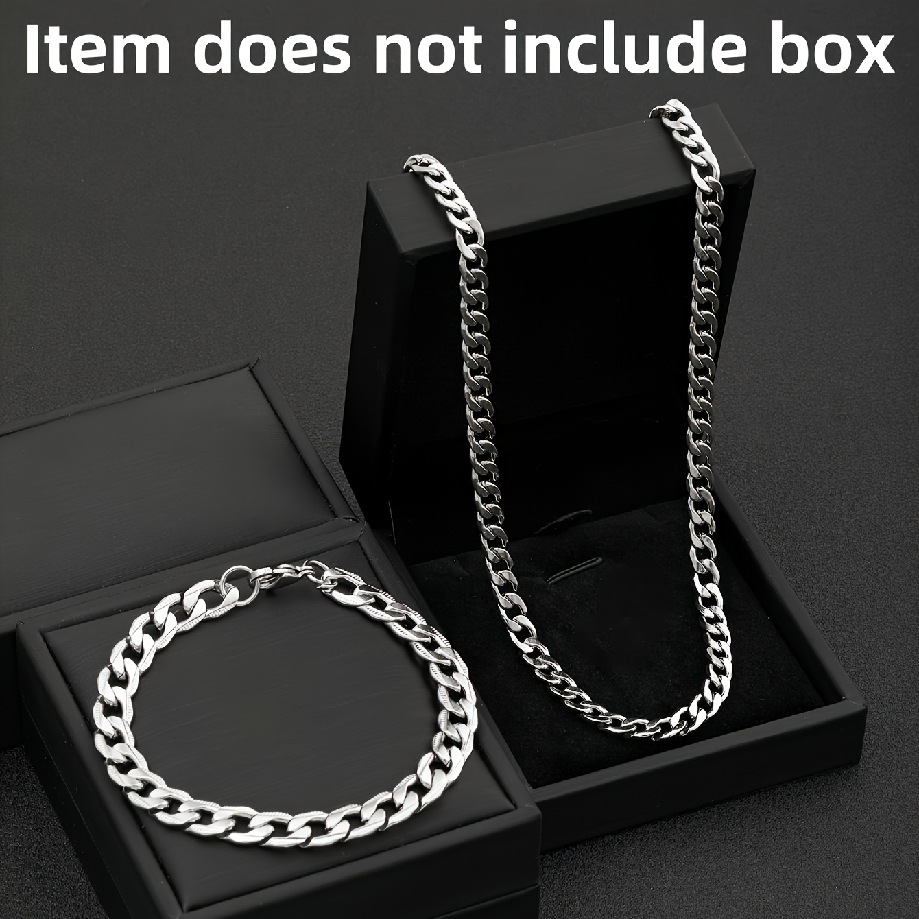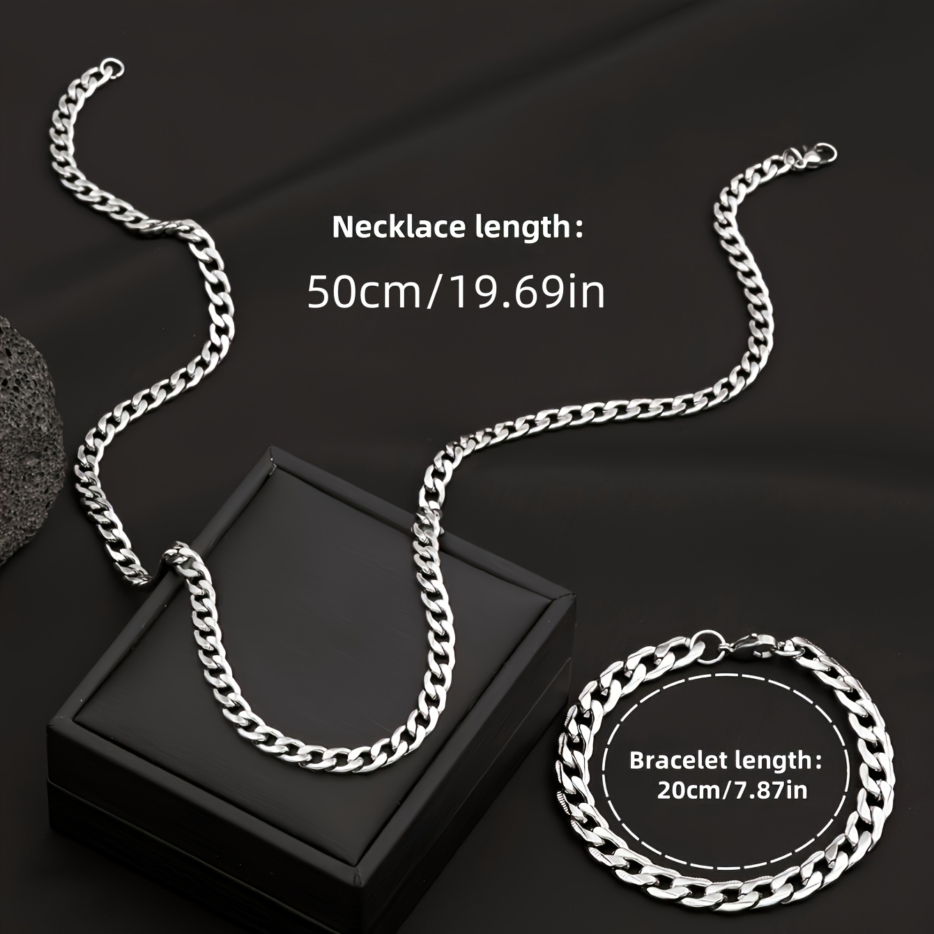 Conjunto de joias masculinas em aço inoxidável, corrente cubana de 50 cm, pulseira com relevo