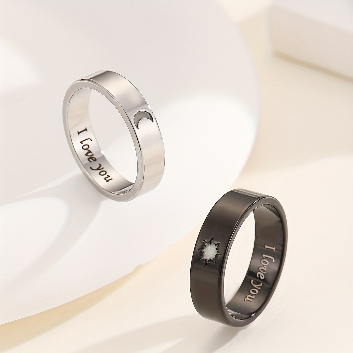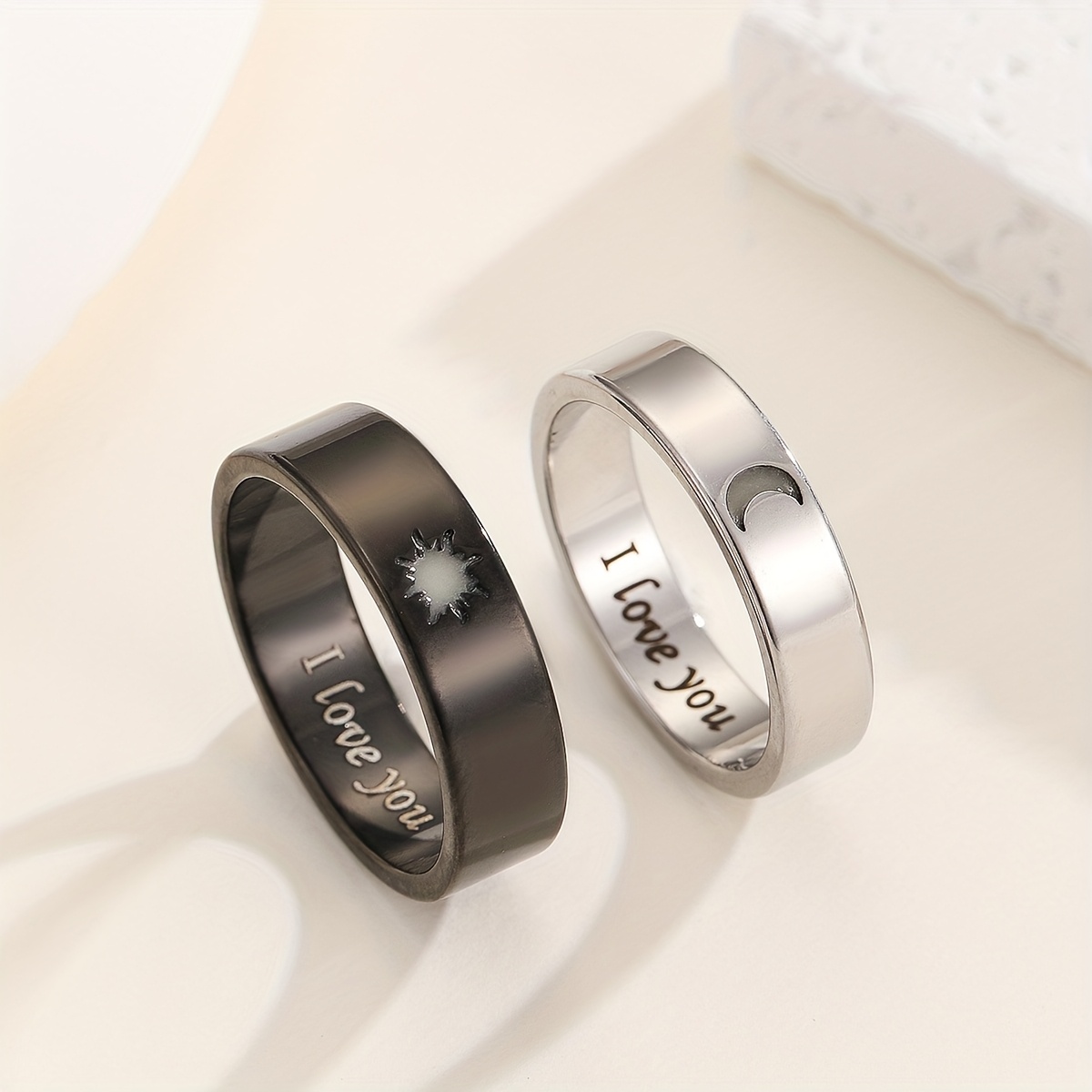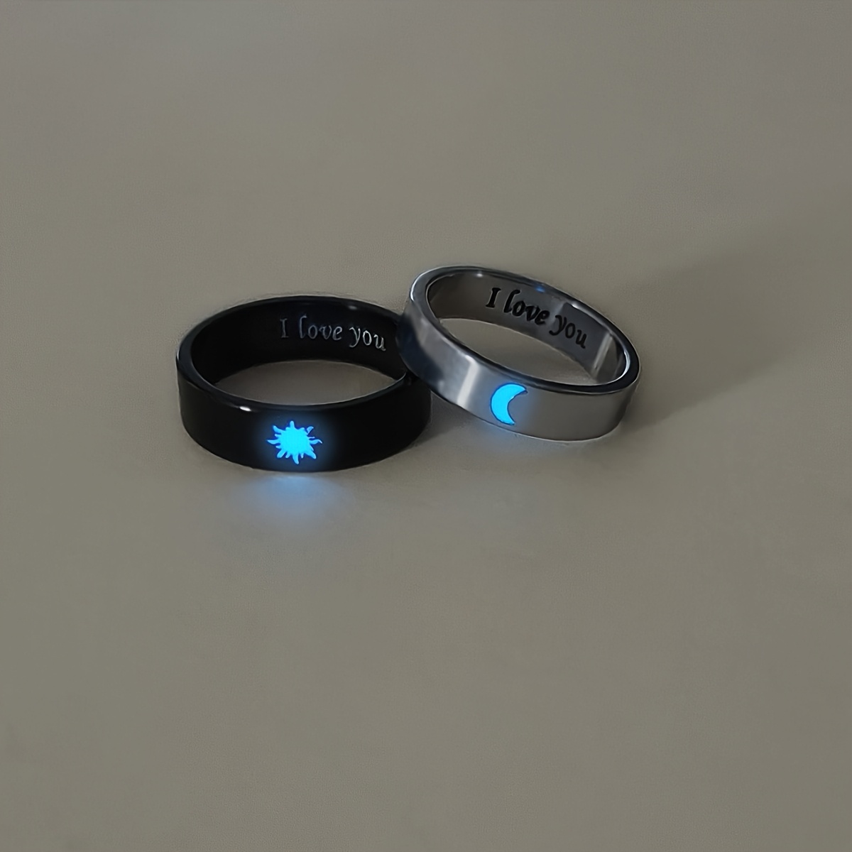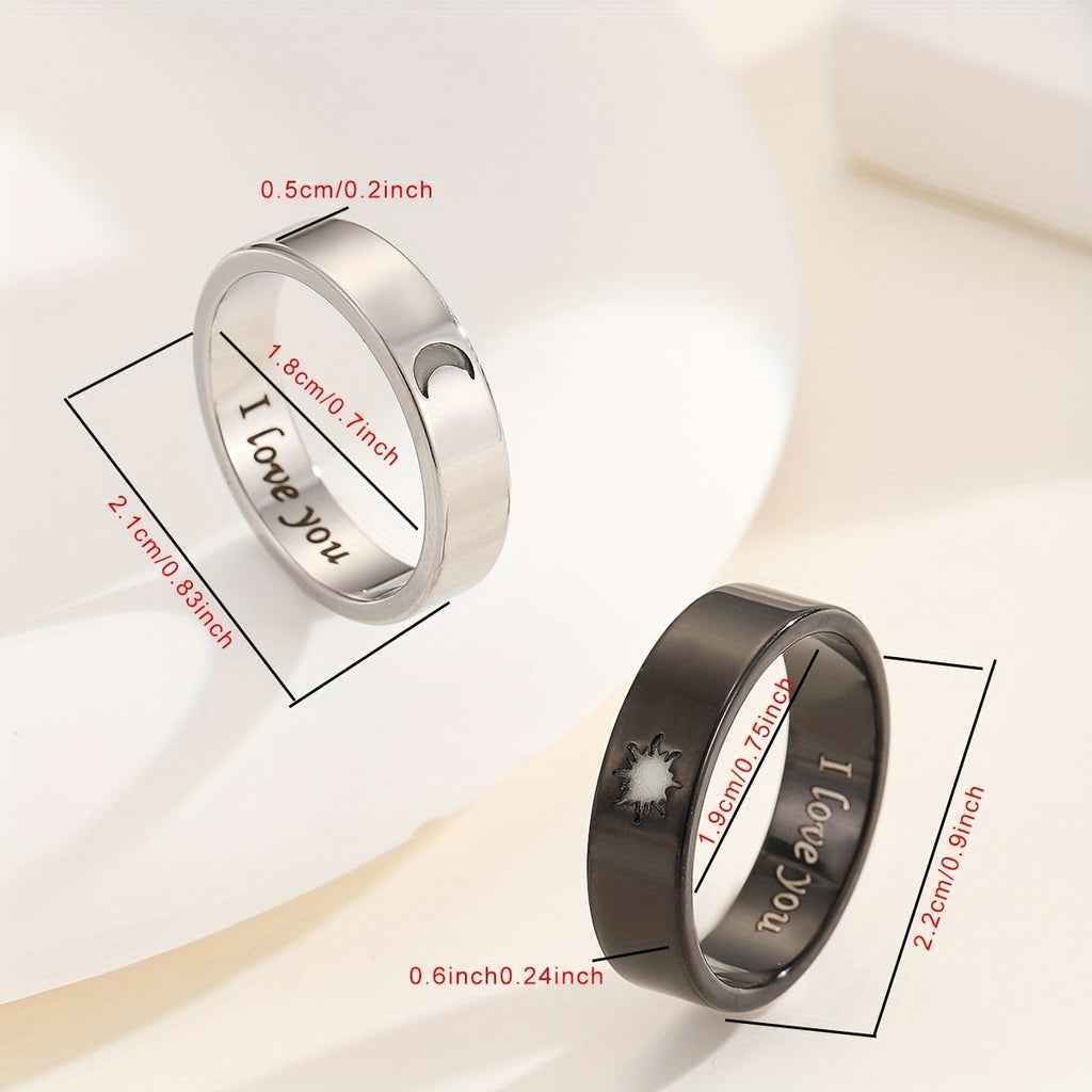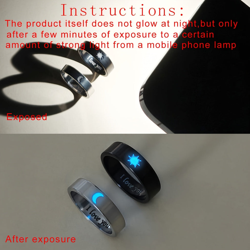 Introducing Synthesis Hot Jewelry: a set of two radiant rings featuring the sun and moon, perfect for Valentine's Day presents. Note: The rings do not emit light in the dark; they only shine after being exposed to bright light for a short period.